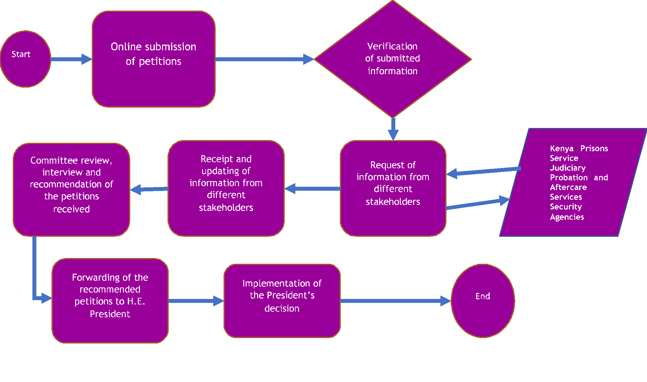 The Committee comprises of nine (9) members: the Attorney General who is the Chairperson, The Cabinet Secretary responsible for correctional services, and seven (7) other members who possess diverse professional expertise, skills and knowledge and are competitively selected by a special panel constituted by His Excellency the President.